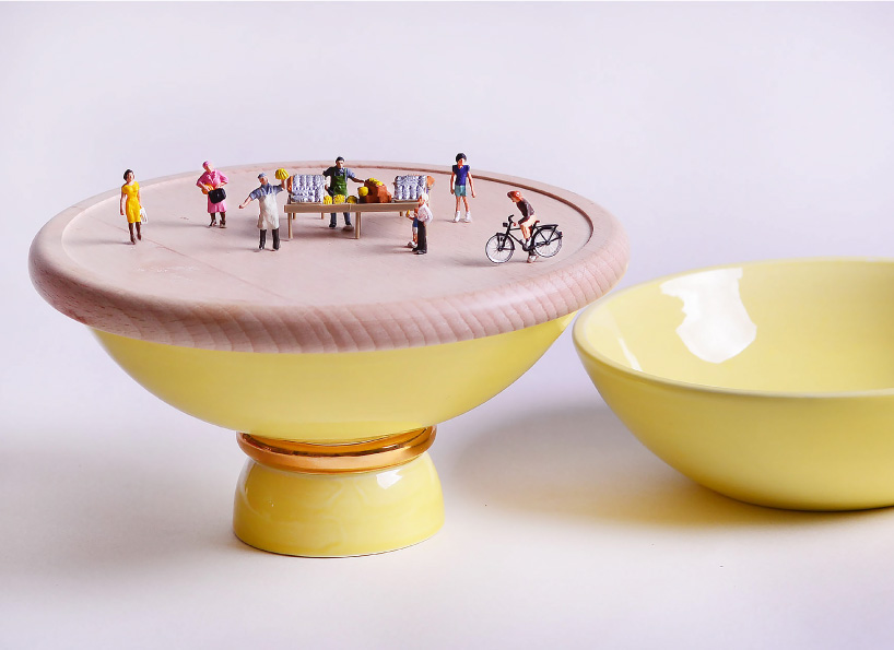 Το atelier Macramè έστησε μία σειρά από φιγούρες-μινιατούρες, -αντρών και γυναικών- γύρω και μέσα από διακοσμητικά αντικείμενα και είδη πρώτης χρήσης. Έτσι, παρακολουθείς ένα μικρόκοσμο να ξεπροβάλλει από ένα κανονικό κεραμικό δοχείο με περίεργο ξύλινο καπάκι ή μέσα από μια σειρά από πορσελάνινα πιάτα που φαντάζουν δάπεδο μιας πλατείας! Cute.