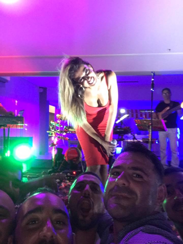 Η τραγουδίστρια, ντυμένη στα κόκκινα, ανέλαβε τη διασκέδαση των καλεσμένων, οι οποίοι φάνηκε να είναι σε τρελά κέφια και να απολαμβάνουν την παρουσία της Χατζίδου, η οποία δεν σταμάτησε να τραγουδάει και να φωτογραφίζεται μαζί τους.