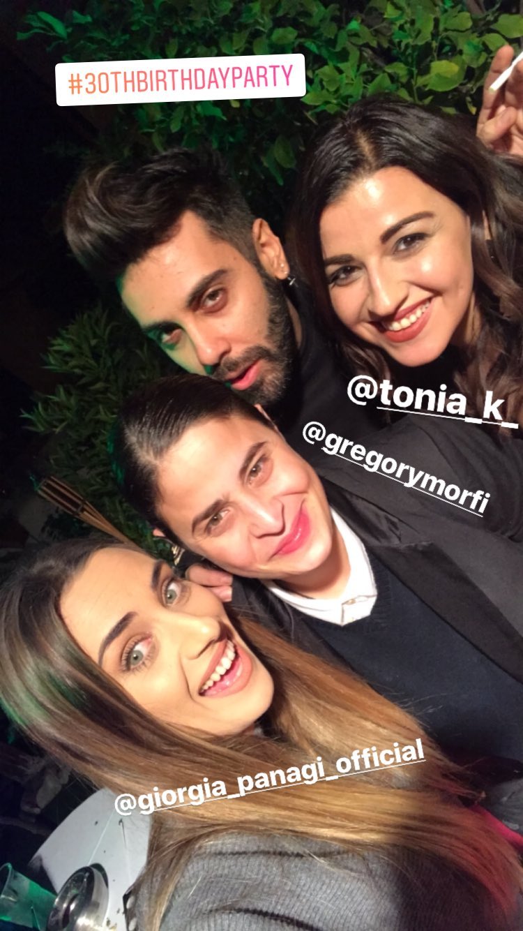 Η εορτάζουσα μαζί με την Τζώρτζια Παναγή, τον Gregory Morfi και την Τόνια Κατσιολούδη.