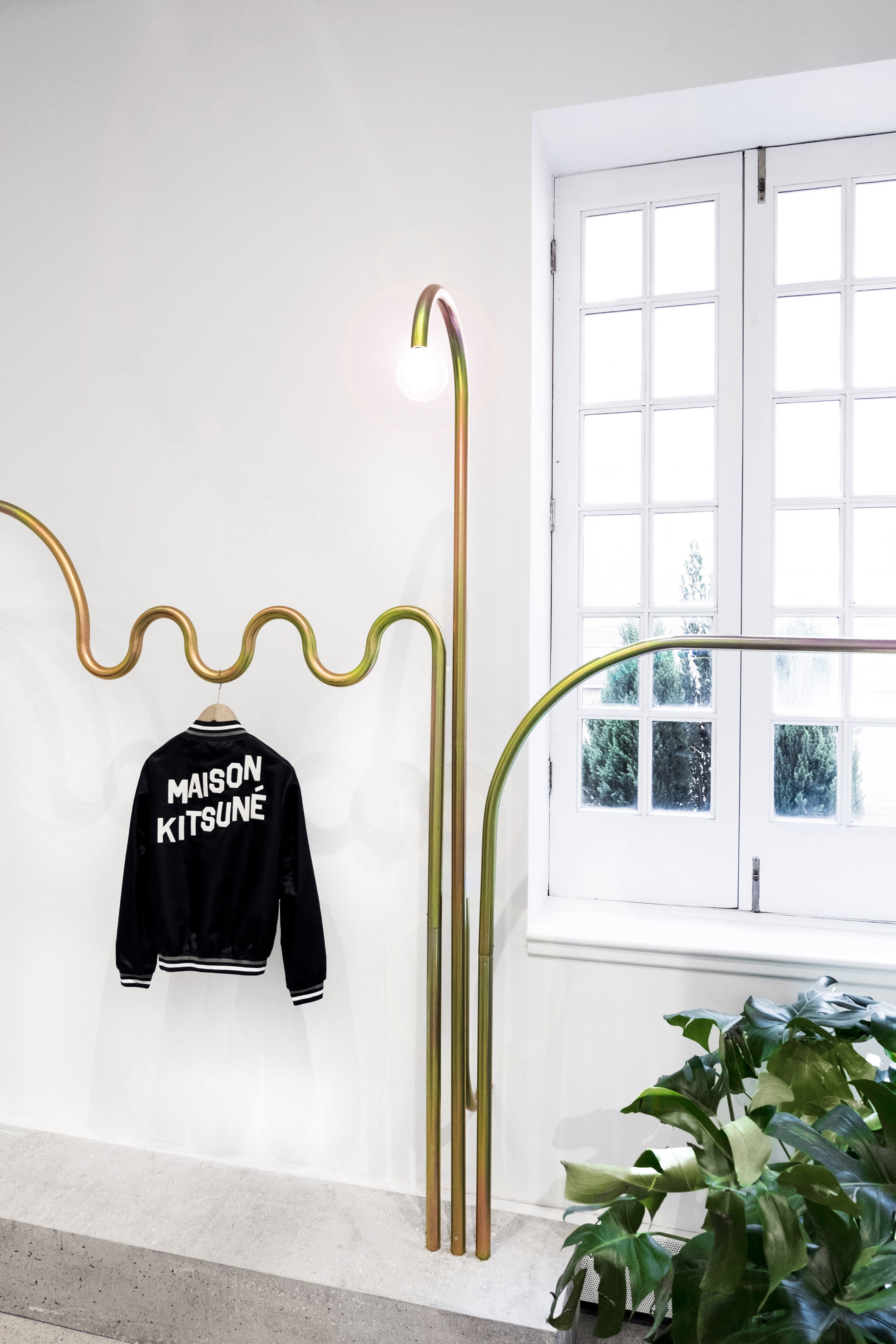 Ο designer Mathieu Lehanneur επιμελείται το εκκεντρικό ντεκόρ του νεοϋρκέζικου καταστήματος του γαλλικού οίκου Maison Kitsuné, που άνοιξε πρόσφατα στο Soho. Οι μεταλλικές μπάρες που επεμβαίνουν μέσα κι έξω του κτιρίου προσδίδουν μία διαφορετική και συνάμα χρηστική αισθητική, με στόχο να συνδέουν με επιβλητικό τρόπο τις καταβολές των ιδρυτών του οίκου, οι οποίοι κατάγονται από Γαλλία και Ιαπωνία.