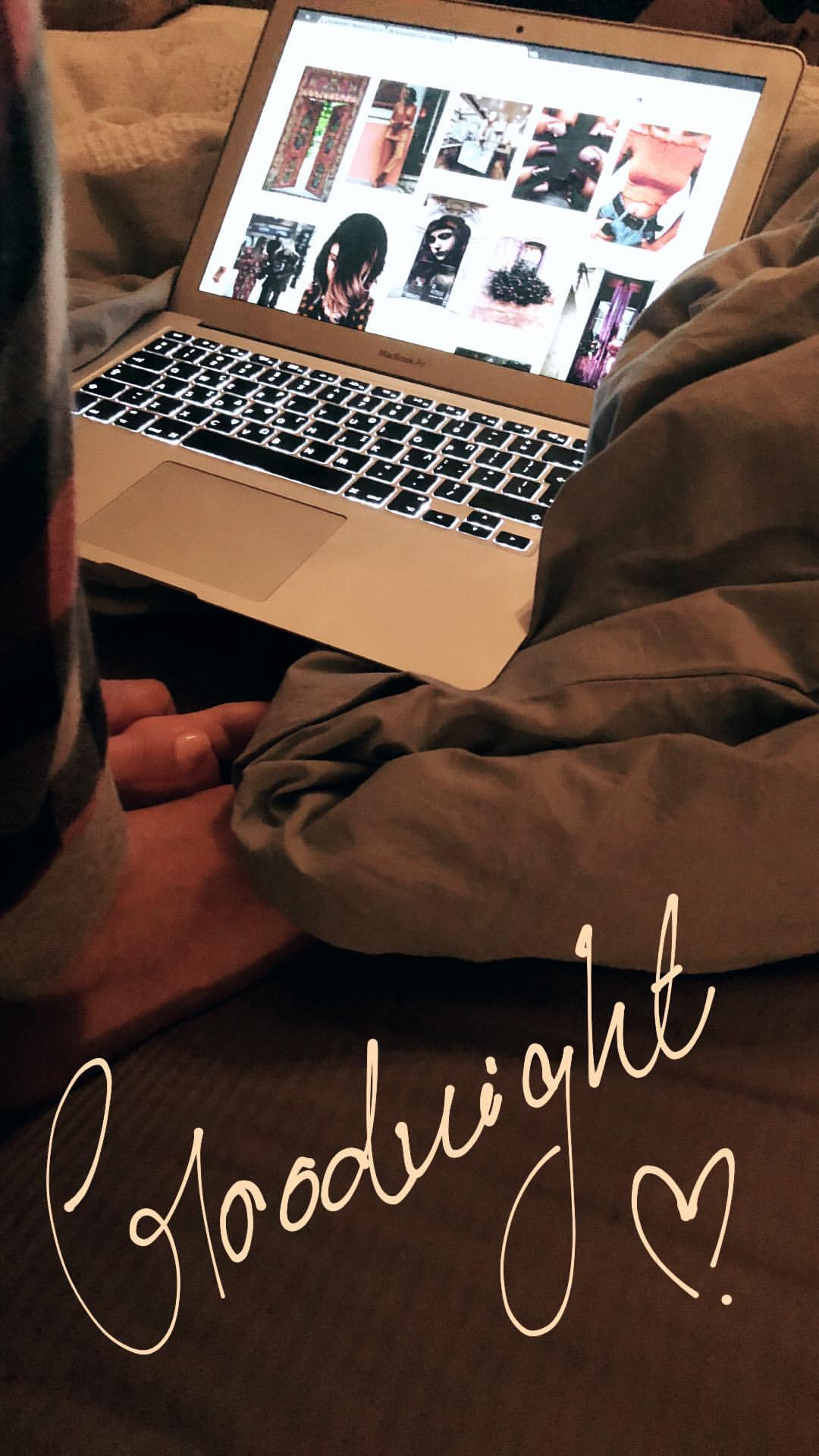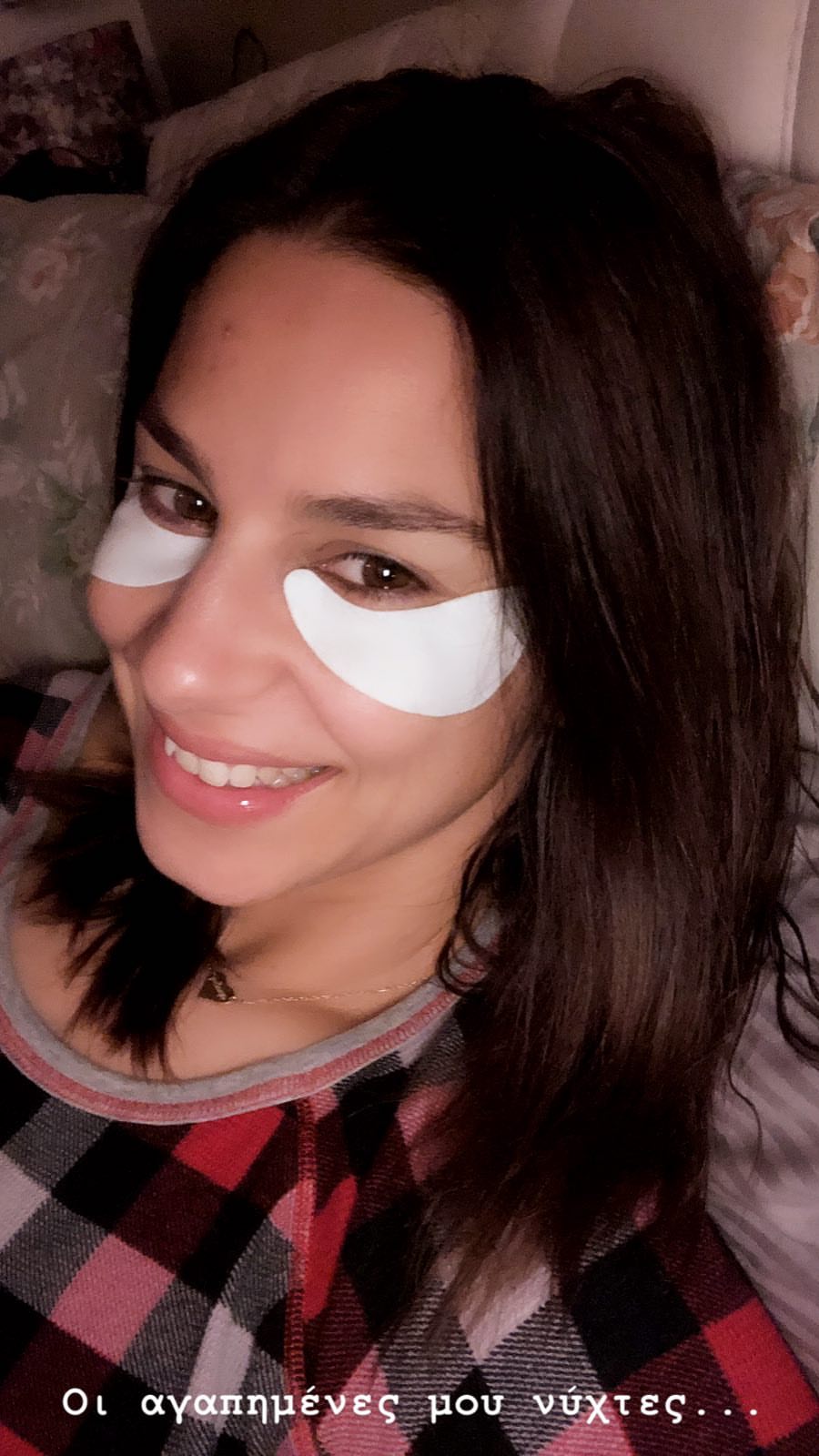 Κι όταν μια κουραστική και βαρυφορτωμένη μέρα φτάνει στο τέλος, η παρουσιάστρια φοράει τις πιτζάμες της, ξαπλώνει στο κρεβάτι της, φροντίζει την επιδερμίδα της και δίχως ίχνος μακιγιάζ καληνυχτίζει με τον πιο γλυκό τρόπο τους διαδικτυακούς της φίλους!