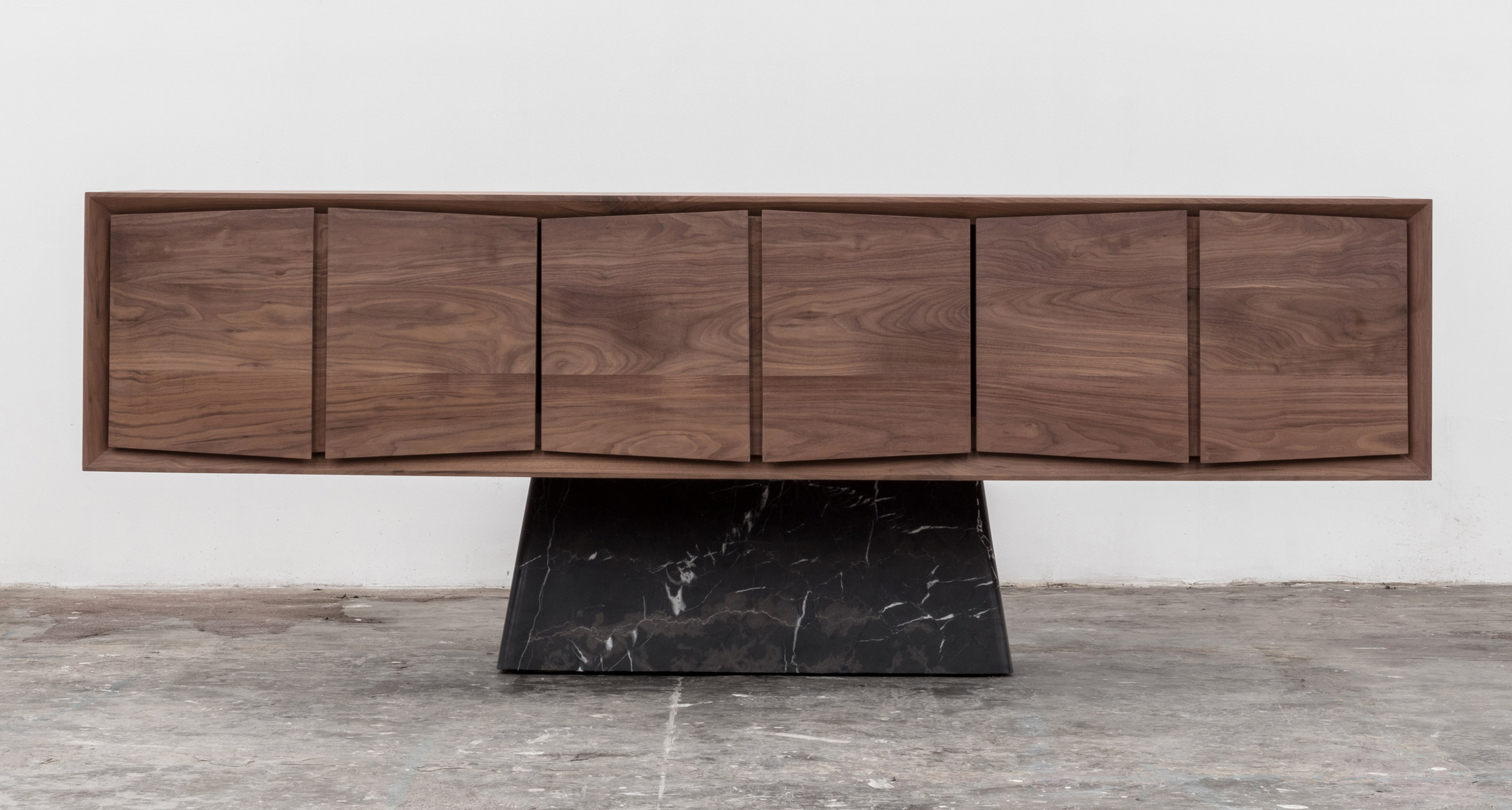 Το μεξικάνικο studio Esrawe σχεδίασε Dolmen collection, μία συλλογή επίπλων καμωμένη από ξύλο καρυδιάς και μάρμαρο. Το κομμάτι που ξεχωρίζει ανάμεσα σε τραπεζαρίες, κομό και πολυθρόνες είναι ο μπουφές που ισορροπεί πάνω σε μια συμμαζευμένη μαρμάρινη βάση.