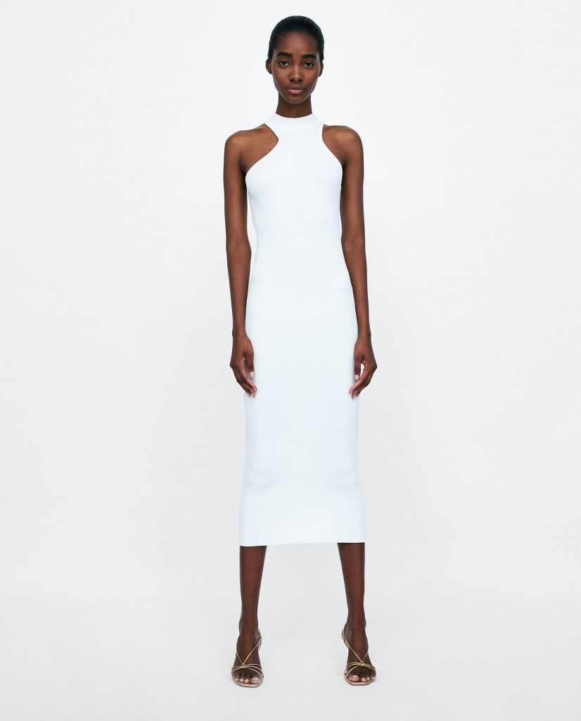 Γι᾽ αυτό και το γεγονός ότι high street μαγαζιά όπως το Zara διαθέτουν ήδη παρόμοιες εκδοχές του δεν μας κάνει εντύπωση. Το Zara λοιπόν εμπνεύστηκε από την elegant φόρεμα της Stella McCartney και δημιούργησε ένα midi halter neck στενό φόρεμα κατάλληλο για τις επίσημες καλοκαιρινές εμφανίσεις μας.