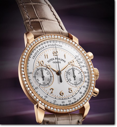 Ο πρώτος γυναικείος χρονογράφος της Patek είναι γεγονός! Είναι εφοδιασμένος με έναν manufacture κουρδιστό μηχανισμό, έχει κάσα 38 mm από ροζ χρυσό 18Κ και είναι διακοσμημένος με 72 διαμάντια στη στεφάνη και 27 διαμάντια στο κούμπωμα.