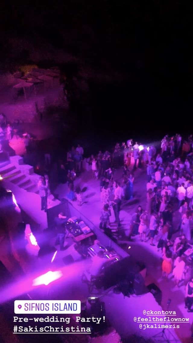 Το βράδυ της Παρασκευής, 31 Αυγούστου, πραγματοποιήθηκε στη Σίφνο, το pre – wedding πάρτι του Σάκη Τανιμανίδη και της Χριστίνας Μπόμπα, λίγες ώρες πριν ανέβουν τα σκαλιά της εκκλησίας και ενώσουν τις ζωές τους.