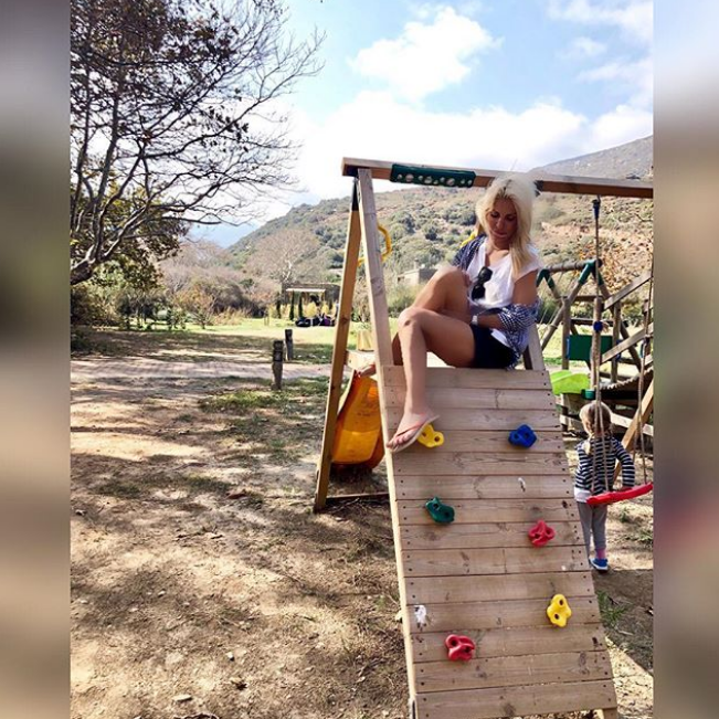 Η παρουσιάστρια, μάλιστα, ανήρτησε και ένα στιγμιότυπο στον προσωπικό της λογαριασμό στο instagram, κάτι που συνηθίζει το τελευταίο διάστημα, όπου τη βλέπουμε στην παιδική χαρά, ενώ ακριβώς από πίσω της είναι η μικρή Μαρίνα, που παίζει.