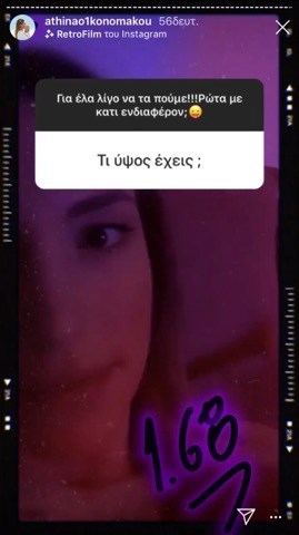 Έτσι λοιπόν, όταν ρωτήθηκε τις προάλλες τι ύψος έχει, η Αθηνά Οικονομάκου απάντησε: “1.68”.