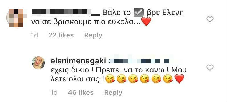 Εκείνη συμφώνησε με τη διαδικτυακή της φίλη και μάλιστα ανέφερε πως της το έχουν επισημάνει αρκετές φορές μέσα στο instagram και φάνηκε πως σκοπεύει να το κάνει.