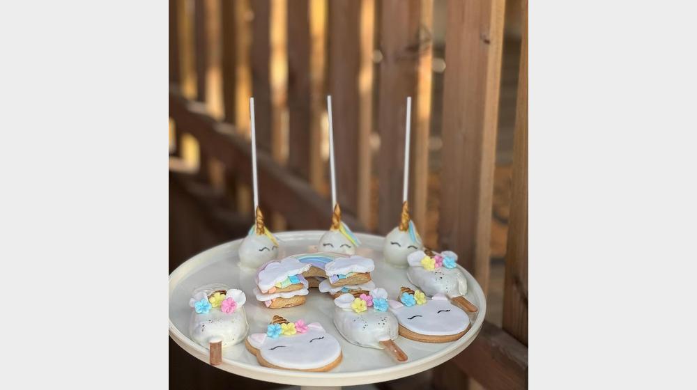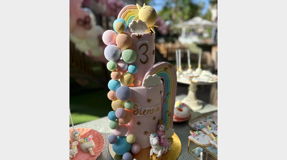 Το ροζ κυριάρχησε στη διακόσμηση με μπαλονοσυνθέσεις που πρόσθεσαν αστερόσκονη στον χώρο. Το θέμα του πάρτι ήταν ο μονόκερος, ο οποίος αποτέλεσε έμπνευση για την τούρτα και τα γλυκά εδέσματα.