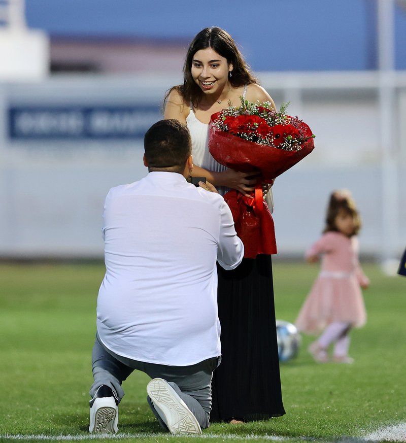 Συγκεκριμένα στο ημίχρονο του αγώνα, ο Ανδρέας, υπεύθυνος των ανακοινώσεων του γηπέδου κατέβηκε μέσα στο γήπεδο και έκανε πρόταση γάμου στην αγαπημένη του Τατιάνα. Εκείνη συγκινημένη του είπε το «Ναι». Δείτε πιο κάτω φωτογραφίες: