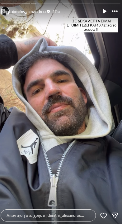 Ένα χιουμοριστικό story ανήρτησε στον λογαριασμό του στο instagram, ο Δημήτρης Αλεξάνδρου, χθες, Κυριακή, 18 Ιανουαρίου.