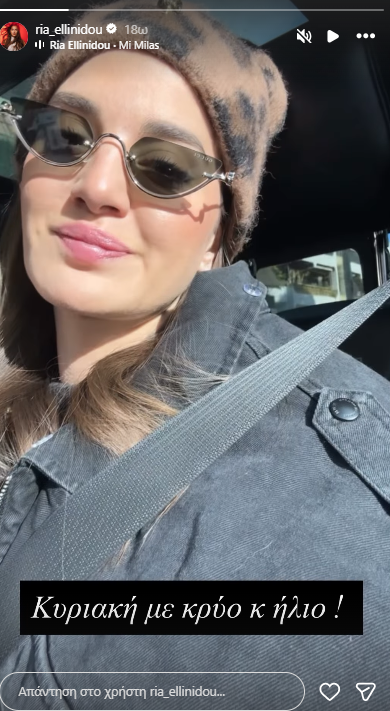«Κυριακή με κρύο και ήλιο», έγραψε ποζάροντας μέσα στο αμάξι, η Ρία Ελληνίδου.