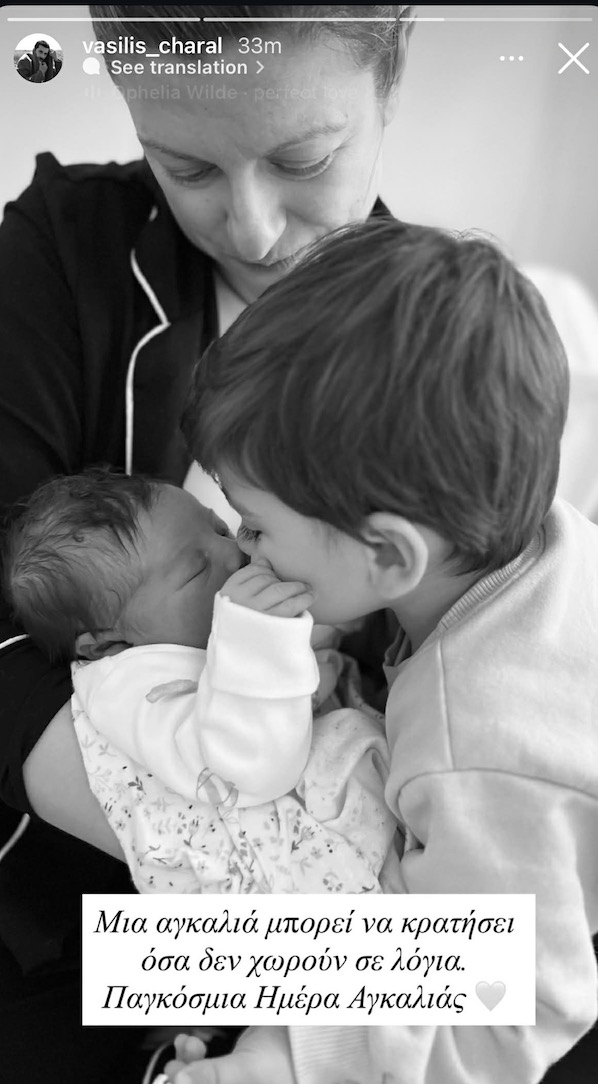 Παγκόσμια Ημέρα Αγκαλιάς είναι η σημερινή ημέρα και ο Βασίλης Χαραλάμπους δημοσίευσε για πρώτη φορά το πιο τρυφερό οιογενειακό στιγμιότυπο μετά την άφιξη της κόρης τους τον περασμένο Δεκεμέβριο.