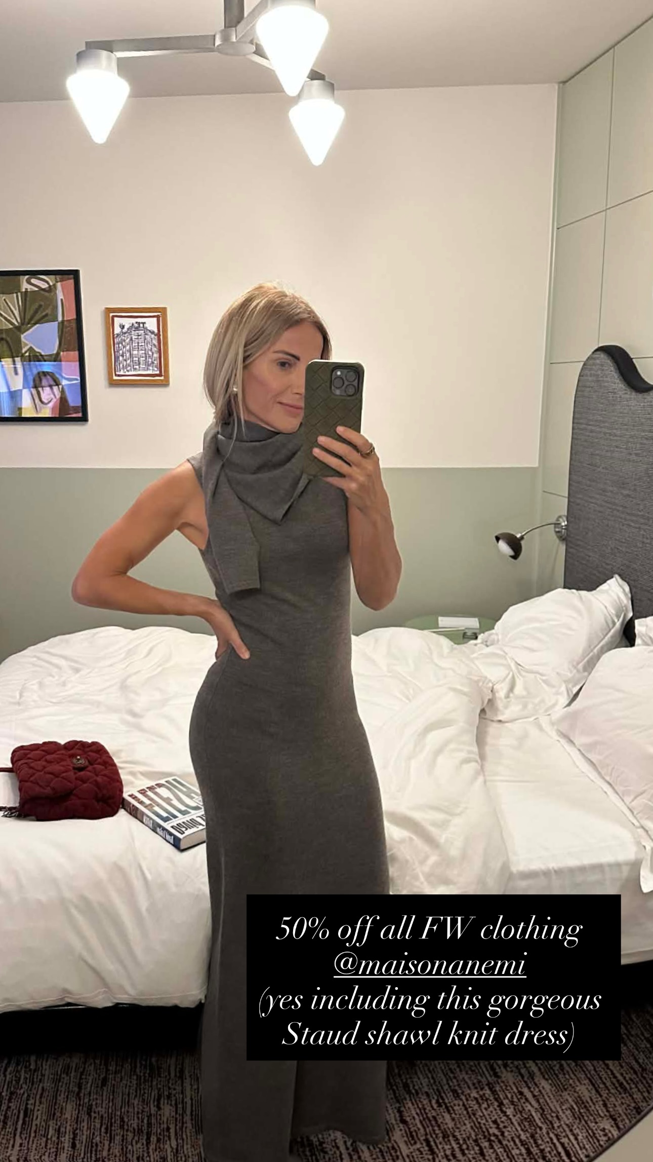 Η επιχειρηματίας μοιράστηκε ανάμεσα στα αγαπημένα της κομμάτια, ένα ιδιαίτερο maxi φόρεμα από Staud, σε γκρι απόχρωση, το οποίο είναι ιδανικό – με τις κατάλληλες προσαρμογές και συνδυασμούς - για all day, κομψές εμφανίσεις.