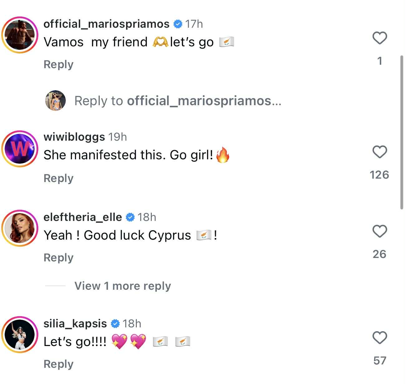Ανάμεσα σε αυτούς που είδαμε να της αφήνουν τις ευχές τους, ήταν η Ελευθερία Ελευθερίου, η Ευαγγελία, ο Andrew Lamprou, η Silia Kapsis, o Theo Evan, ο Μάριος Πρίαμος, η Stefania (εκπρόσωπος της Ελλάδας στην Eurovision 2021).