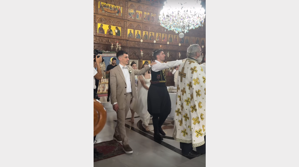 Σε επόμενο story ο Ευρωβουλευτής, περιμένει το ζευγάρι να κάνει την είσοδό του, μέσα στην εκκλησία, με το μυστήριο όπως αποκλειστικά πληροφορηθήκαμε να τελείται στον Ιερό Ναό Παναγίας Χρυσελεούσης στο Ακάκι, ενώ ακολούθως μετά, βλέπουμε τον Φειδία, και στον χορό του Ησαΐα, να κρατάει τον γαμπρό, βρισκόμενος στο πλάι του.