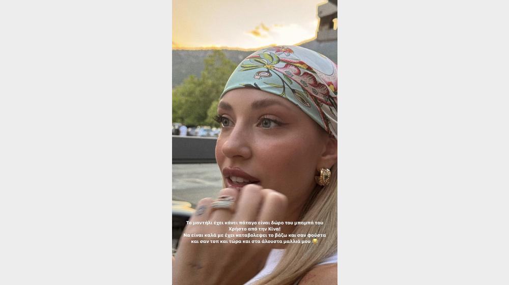 «Το μαντήλι έχει κάνει πάταγο. Είναι δώρο του μπαμπά του Χρήστου από την Κίνα. Να είναι καλά, με έχει καταβολέψει, το βάζω και σαν φούστα και σαν τοπ και τώρα και στα άλουστα μαλλιά μου», επεσήμανε. Δείτε τις σχετικές εικόνες: