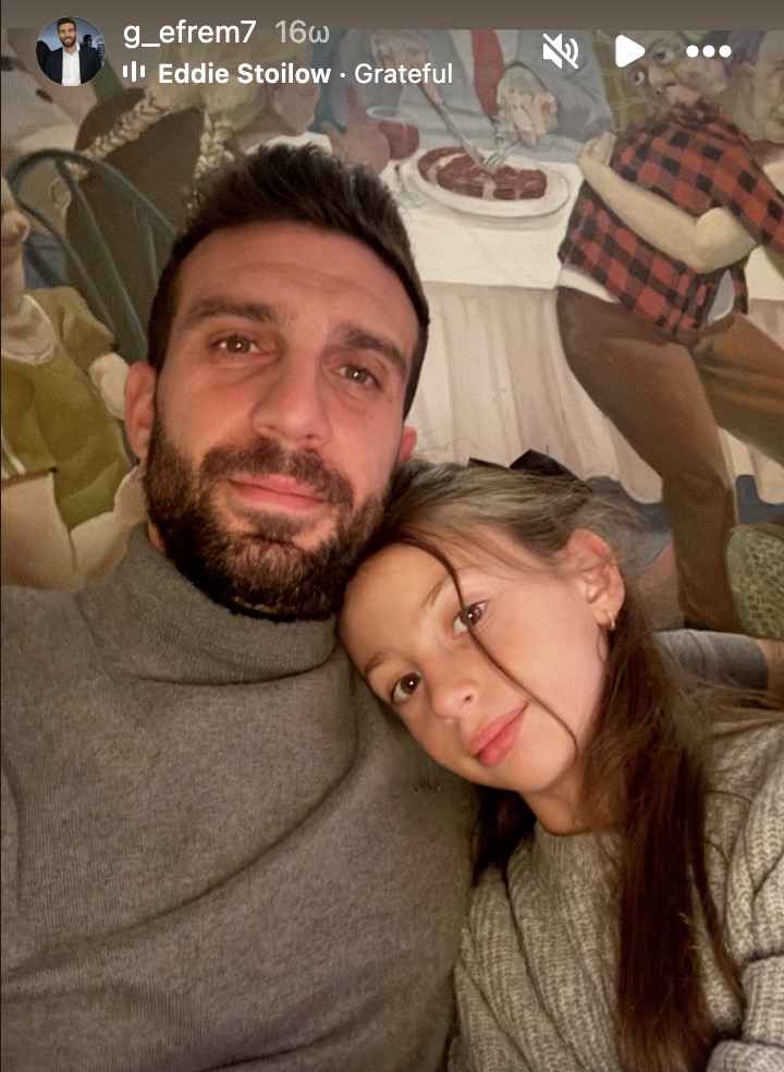Το μεσημέρι της Πρωτοχρονιάς ο Γιώργος Εφραίμ θέλησε να ευχηθεί στους διαδικτυακούς του ακόλουθους «Καλή χρονιά» υποδεχόμενος με την οικογένεια του τη νέα χρονιά. Ο πρώην διεθνής ποδοσφαιριστής πήρε την κόρη του αγκαλιά και αφού έβγαλαν μία αναμνηστική φωτογραφία τη δημοσίευσε στον προσωπικό λογαριασμό του στο instagram.