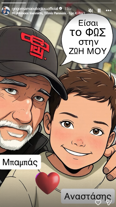 «Είσαι το φώς στη ζωή μου», πρόσθεσε στο story που ανέβασε δείχνοντάς μας τους δυο τους ως animation, ο Γρηγόρης Αρναούτογλου.