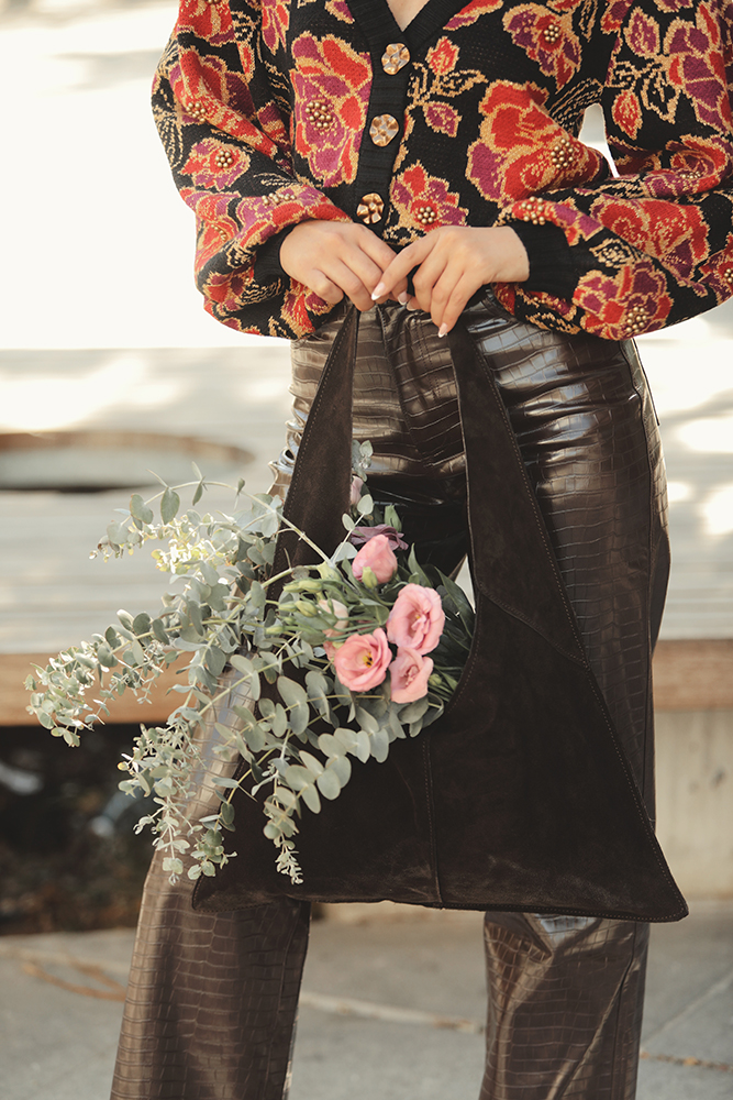 Ζακέτα Farm Rio / Παντελόνι ISABELLE BLANCHE / Τσάντα Answear.LAB / Δερμάτινες γόβες Bally / Σκουλαρίκια ANIA KRUK VINTAGE