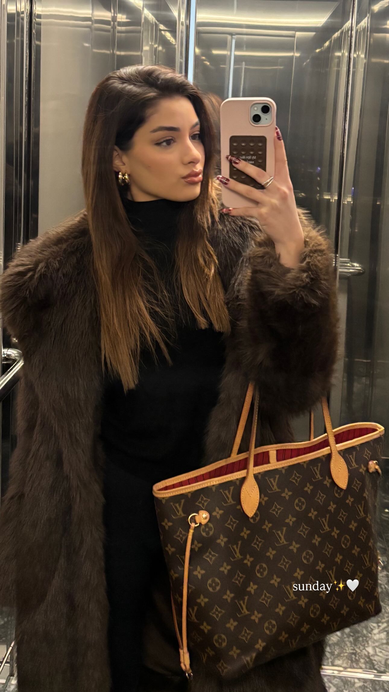 Η πλούσια καφέ γούνα λειτουργεί ως ο απόλυτος πρωταγωνιστής του συνόλου. Ο όγκος και η υφή της χαρίζουν αμέσως αίσθηση υψηλής αισθητικής, ενώ το μήκος της αγκαλιάζει τη σιλουέτα με τρόπο που παραπέμπει σε classic icons της μόδας. Φορεμένη πάνω από ένα total black outfit, δημιουργεί την ιδανική αντίθεση… σκοτεινή, μυστηριώδης και ταυτόχρονα απόλυτα θηλυκή.
