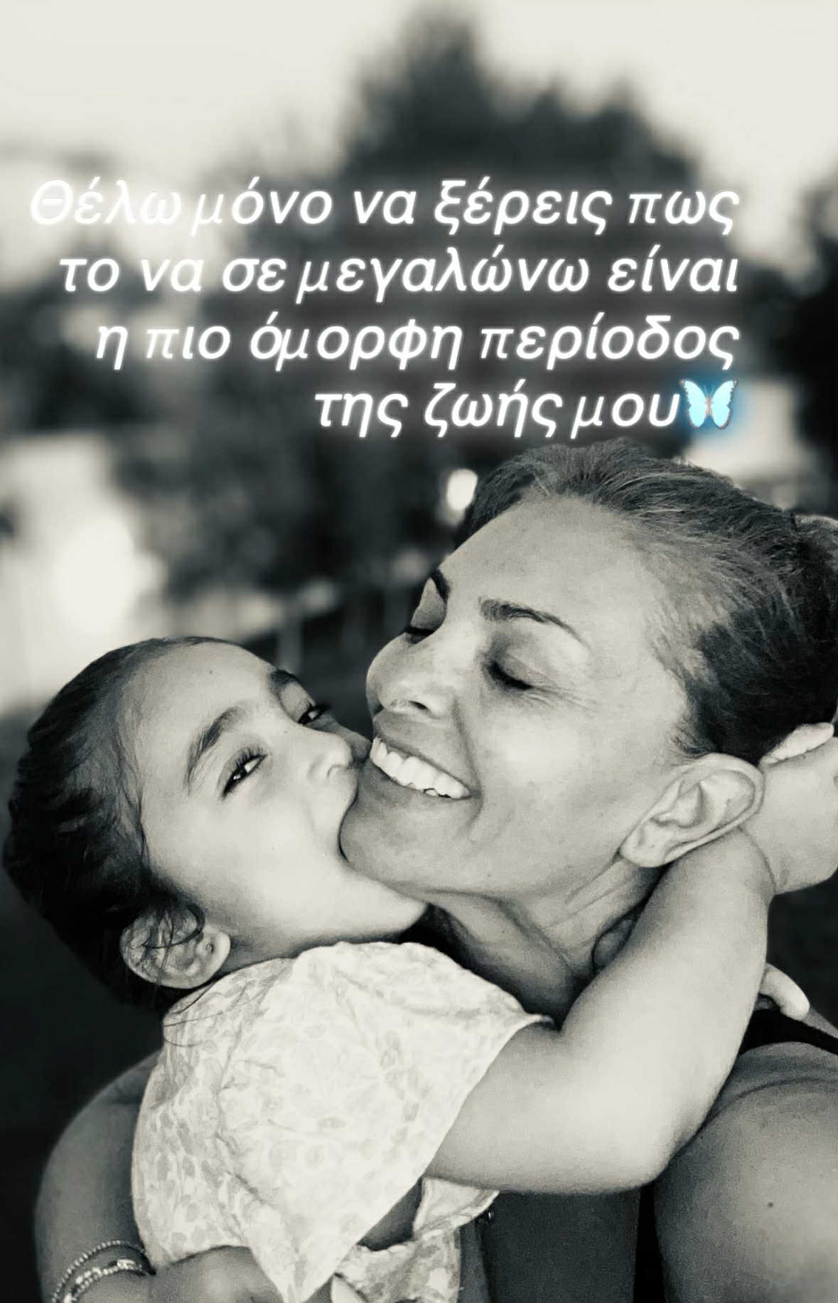 Η ηθοποιός, μοιράστηκε νωρίτερα σήμερα σε story στον προσωπικό της λογαριασμό στο instagram ένα πολύ τρυφερό στιγμιότυπο με την 3χρονη κόρη της και έγραψε στην εικόνα: «Θέλω μόνο να ξέρεις πως το να σε μεγαλώνω είναι η πιο όμορφη περίοδος τη ζωής μου». Δείτε πιο κάτω τη σχετική ανάρτηση: