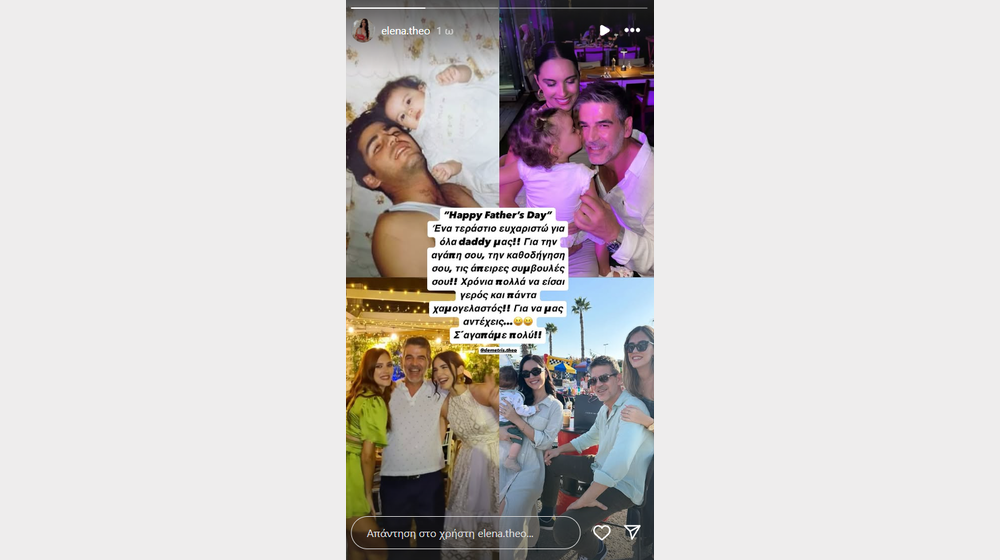 Σήμερα, Κυριακή, 15 Ιουνίου, εκπρόσωποι της κυπριακής showbiz, μεταξύ των οποίων, αρκετοί από αυτούς είναι και οι ίδιοι πατεράδες, φρόντισαν να ευχηθούν στο αγαπημένο τους πρόσωπο, αλλά και να γιορτάσουν τη γιορτή τους, αναρτώντας στα stories τους, γλυκές τους στιγμές.
