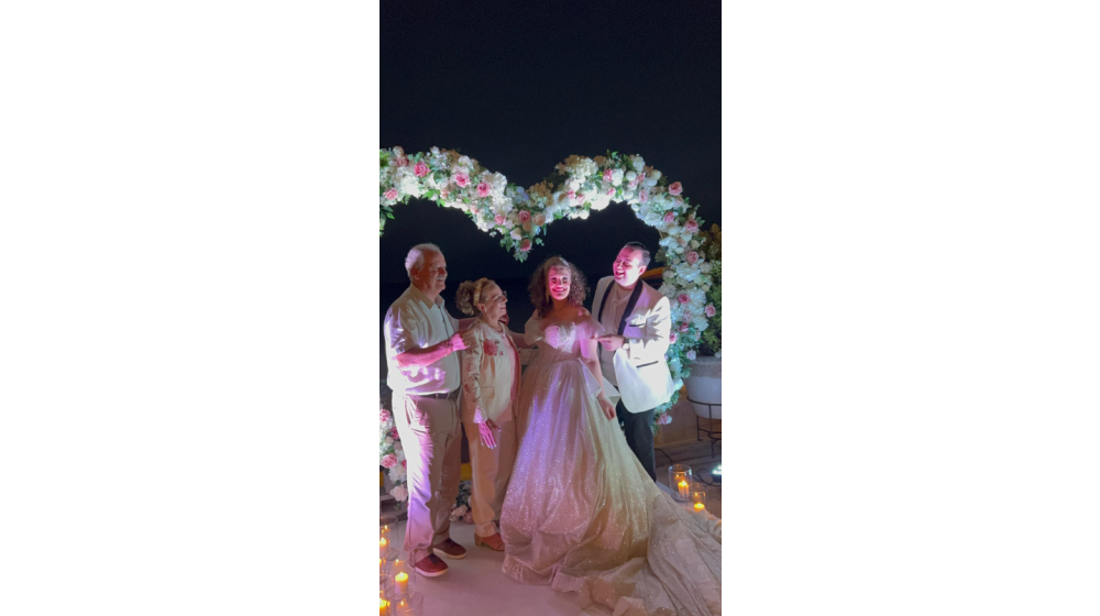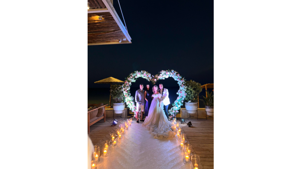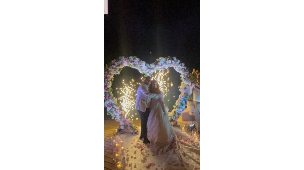 Τα βεγγαλικά, η αψίδα καρδιάς, η τούρτα και το νυφικό, στα highlights της όλης βραδιάς.