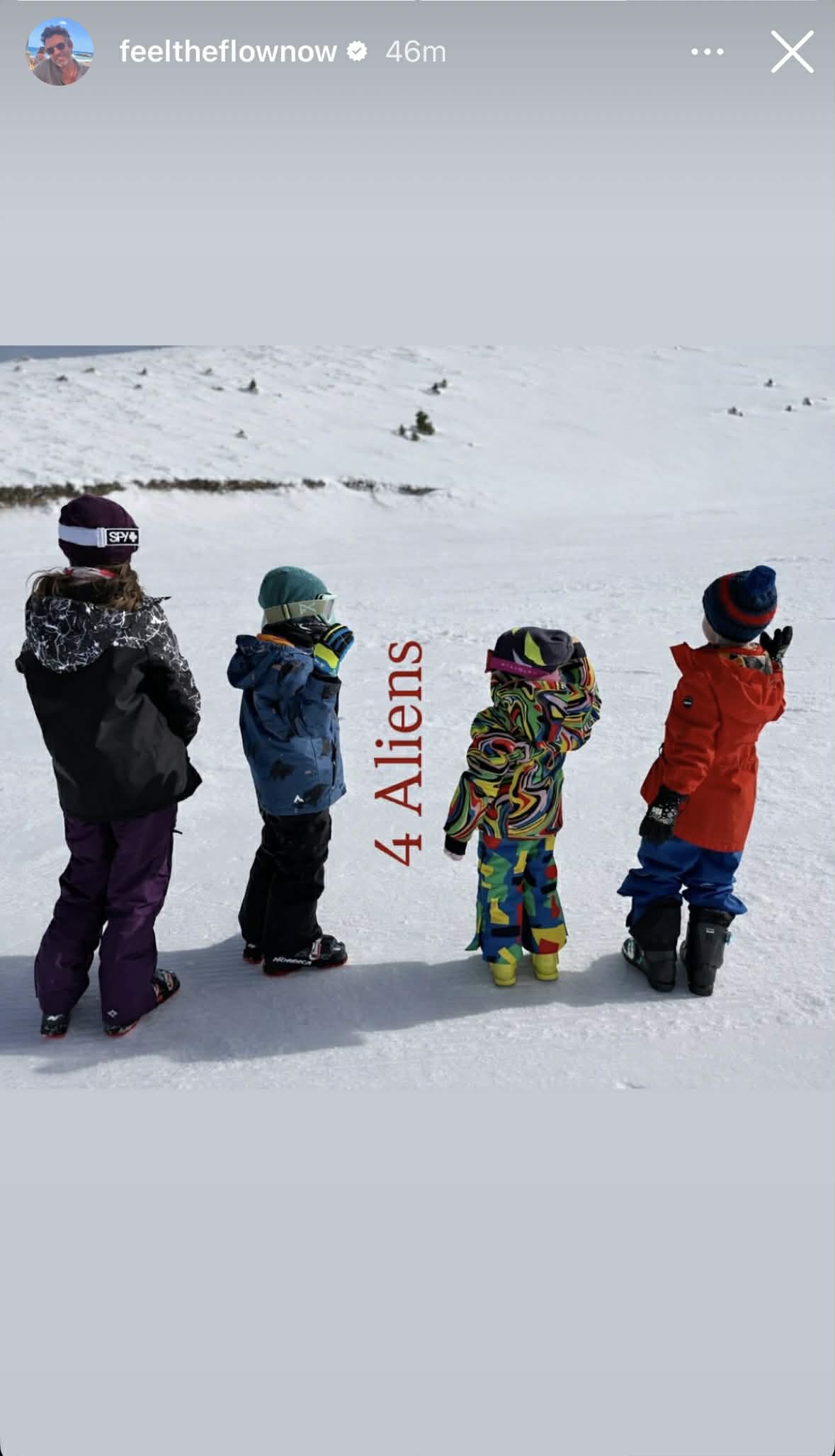 Ο επιχειρηματίας μοιράστηκε στον προσωπικό του λογαριασμό στο instagram ένα στιγμιότυπο όπου απαθανάτισε τα τέσσερα παιδιά να θαυμάζουν το κατάλευκο τοπίο, γράφοντας χαριτολογώντας στην εικόνα: «4 εξωγήινοι».