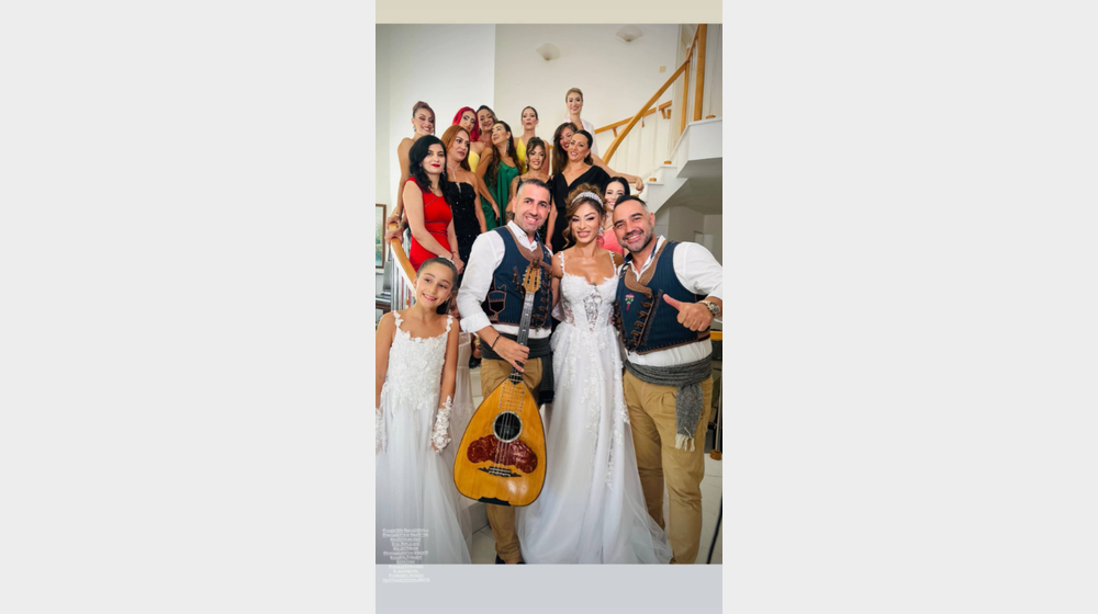 Η εκλεκτή της καρδιάς του Στέφανου Μιχαήλ, και γνωστή χορεύτρια — χορογράφος του νησιού μας, φορώντας τη λευκή δημιουργία της, «έκλεψε» τις εντυπώσεις καθώς και όλα τα βλέμματα, με το πιο λαμπερό της χαμόγελο.