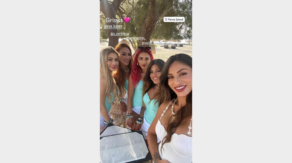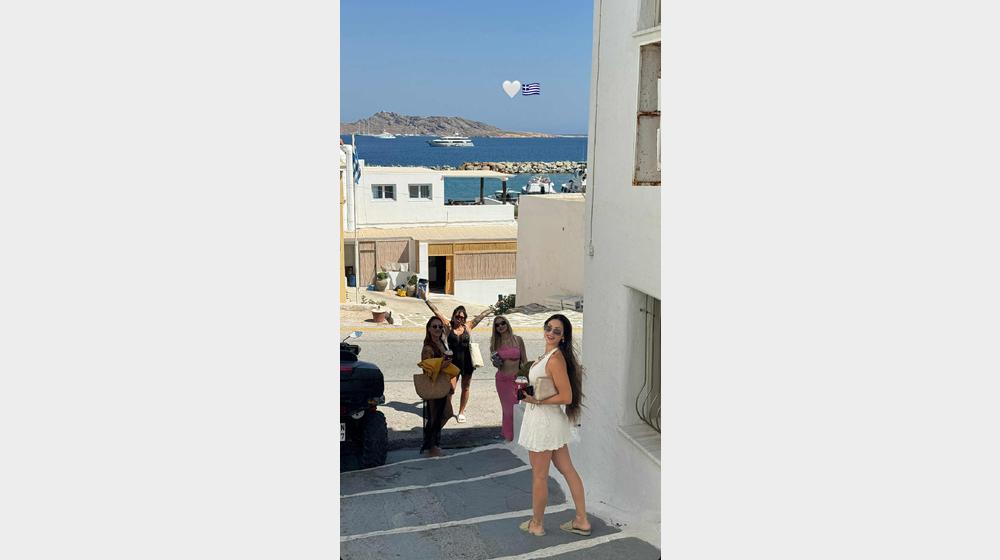 Με τις φίλες της σε ένα από τα πιο κοσμοπολίτικα νησιά.