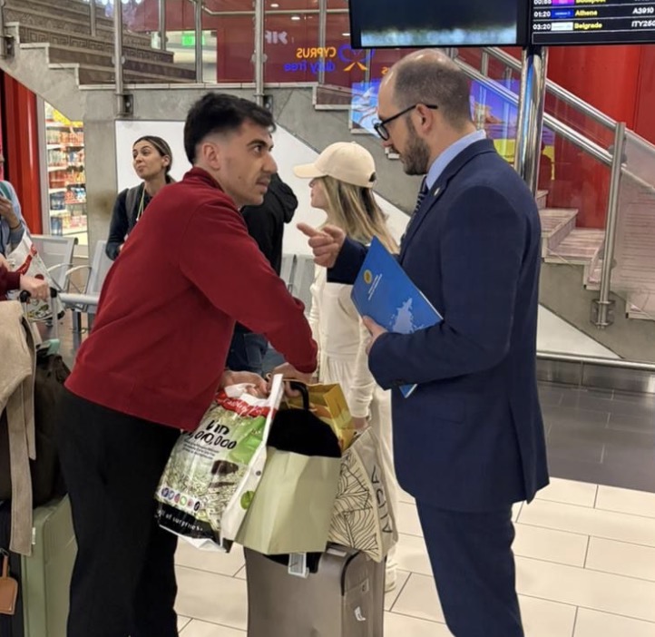 Δεκάδες Κύπριοι επιβάτες μόλις έφθασαν από το Dubai και ανάμεσα τους ήταν και η Στυλιάνα Αβερκίου. Εκεί την περίμενε ο ο σύντροφος της Φειδίας Παναγιώτου ο οποίος την αγκάλιασε σφιχτά.