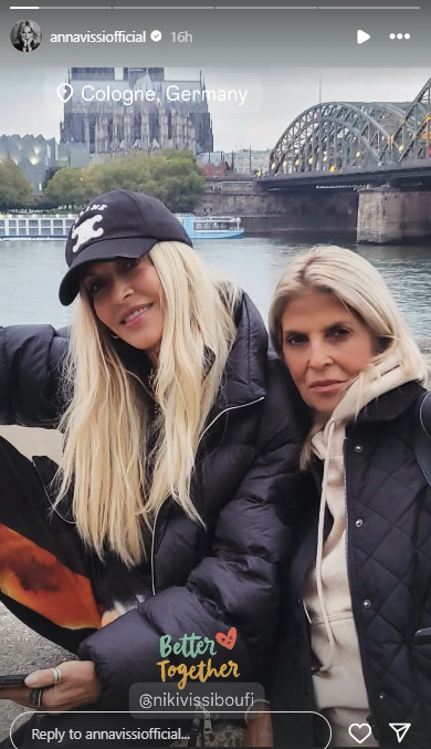 Οι αδερφές Βίσση, ποζάρουν στο φακό, έχοντας πίσω τους τον Καθεδρικό Ναό της Κολωνίας καθώς και τη γέφυρα Hohenzollern, με την Άννα Βίσση κάνοντας tag την αδερφή της, να προσθέτει σε gif το «Καλύτερα μαζί».