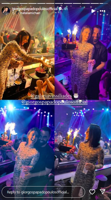 Στα stories που κοινοποίησε ο τραγουδιστής, μέσα από τον λογαριασμό του στο instagram, πετύχαμε διάφορα στιγμιότυπα των εορτασμών, με τις ευχές του προς την εορτάζουσα να ξεχωρίζουν.