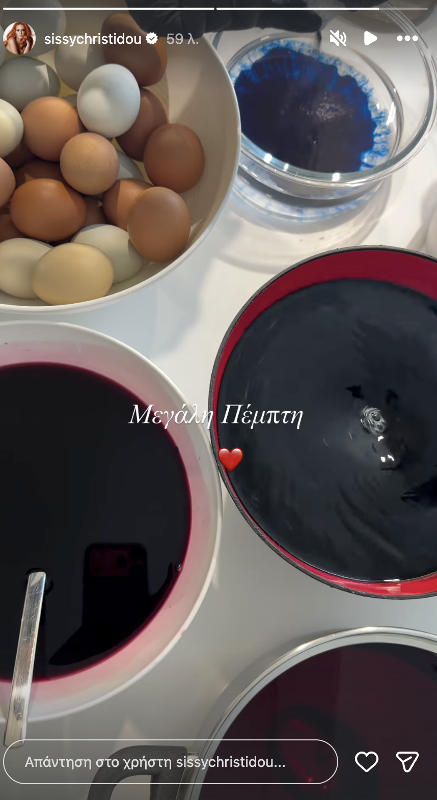 Το βάψιμο των αυγών της Μεγάλης Πέμπτης αποτελεί ένα από τα πιο συμβολικά έθιμα του Πάσχα, και για τη Σίσσυ Χρηστίδου φαίνεται πως είναι μια παράδοση που θέλει να περνά μαζί με τους γιους της.