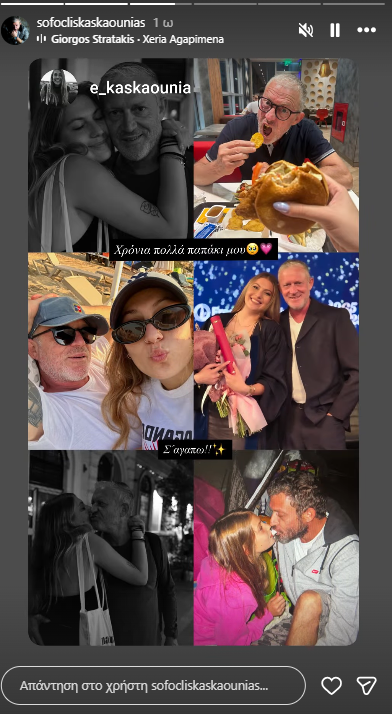 Δημοσιεύοντας διάφορες στιγμές της καθημερινότητάς τους, η Ελένη Κασκαούνια, γράφει τα εξής: «Χρόνια πολλά παπάκι μου. Σ΄αγαπώ».