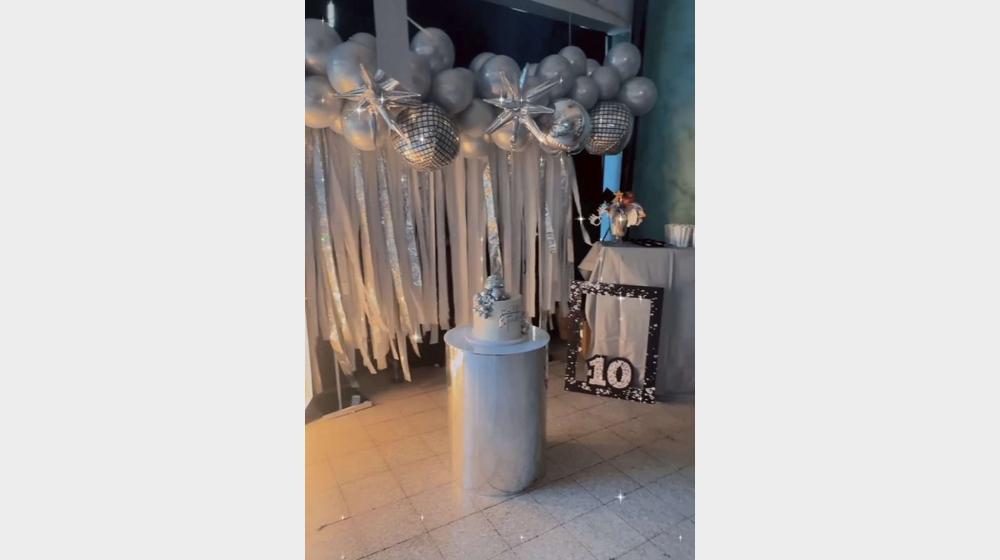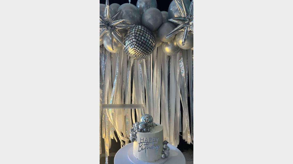 Το πάρτι είχε disco theme και η διακόσμηση ήταν εμπνευσμένη βεβαίως από τη discotheque. Μπαλονοσυνθέσεις σε silver αποχρώσεις ενώ πρωταγωνιστικό ρόλο στη διακόσμηση του χώρου καθώς επίσης και στην τούρτα είχε η εμβληματική ντισκομπάλα.