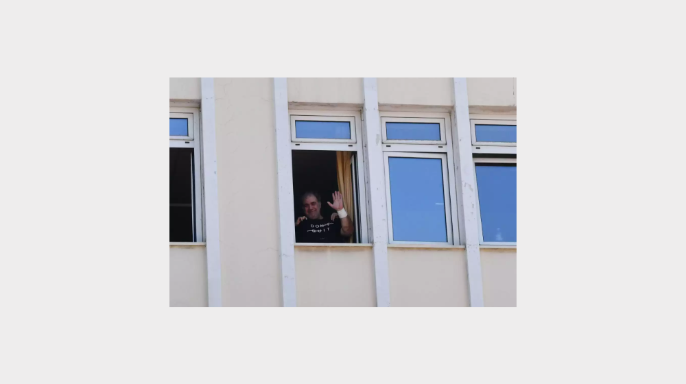 Ο καλλιτέχνης λίγο πριν εξέλθει του νοσηλευτηρίου φάνηκε από το παράθυρο να χαιρετάει και να ευχαριστεί τους δημοσιογράφους που βρέθηκαν εκεί και του συμπαραστάθηκαν όλο αυτό το διάστημα. Μάλιστα συμβολικό ήταν και το μπλουζάκι που φορούσε αναγράφοντας το μήνυμα «Don’t quit (Μην τα παρατάς)». Δείτε στην πιο κάτω gallery τις σχετικές εικόνες: