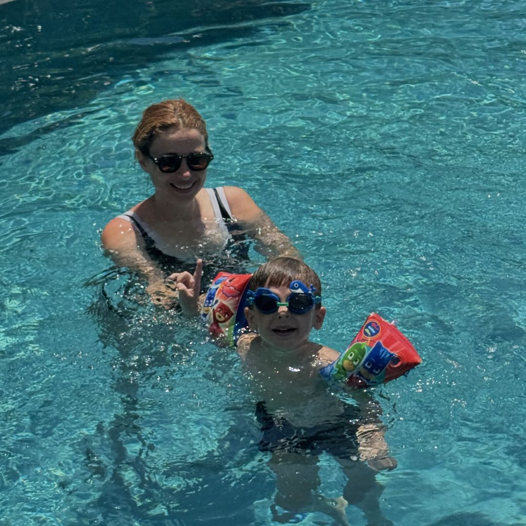 Η παρουσιάστρια επέλεξε να μοιραστεί στο timeline στον προσωπικό της λογαριασμό στο instagram ένα στιγμιότυπο με τον γιο της στην πισίνα, ο οποίος φόρεσε τα μπρατσάκια από τους αγαπημένους του πιτζαμοήρωες.