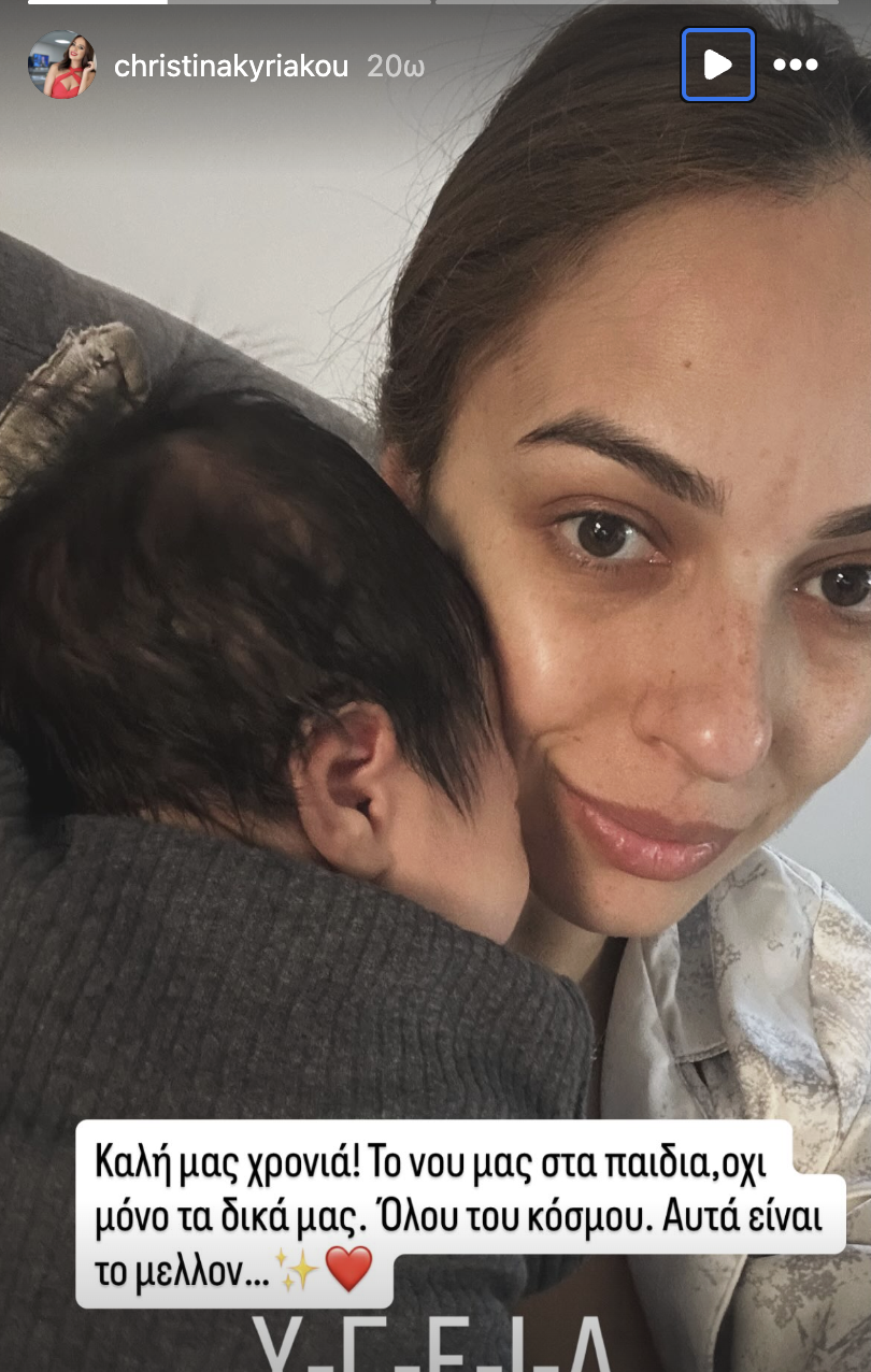 Στο κάτω μέρος του story, η Χριστίνα Κυριάκου έγραψε χαρακτηριστικά: «Καλή μας χρονιά! Το νου μας στα παιδιά, όχι μόνο στα δικά μας. Όλου του κόσμου. Αυτά είναι το μέλλον».