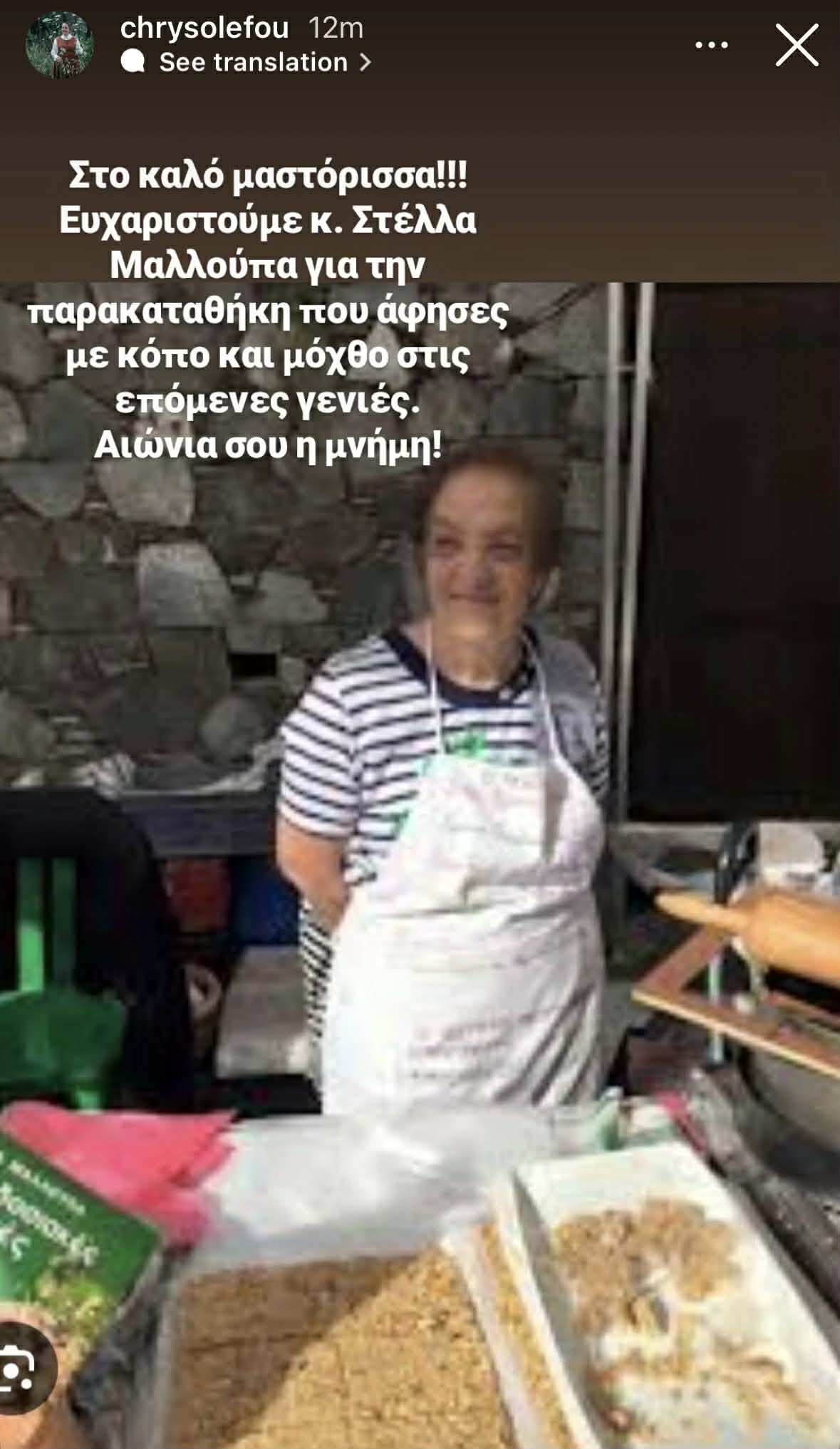 Η Χρύσω Λέφου μέσα από τον προσωπικό της λογαριασμό στο instagram αποχαιρέτησε μία από τις πιο γνωστές γυναίκες του νησιού όσον αφορά στην κουζίνα, η οποία φρόντισε μέσα από τη δημόσια δράση της να διαδώσει την κυπριακής γαστρονομική παράδοση.