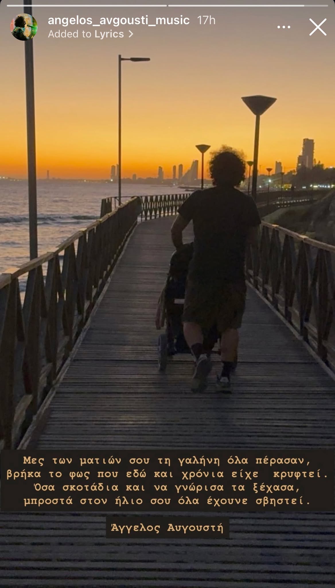 Χαρακτηριστικά, ο Κύπριος τραγουδιστής, αφιέρωσε στίχους στον πρώτο καρπό του έρωτα του, γράφοντας στο story του τα εξής: «Μες των ματιών σου τη γαλήνη όλα πέρασαν, βρήκα το φως που εδώ και χρόνια είχε κρυφτεί. Όσα σκοτάδια και να γνώρισα τα ξέχασα, μπροστά στον ήλιο σου όλα έχουνε σβηστεί». Δείτε τη σχετική εικόνα που εντοπίσαμε στα social media: