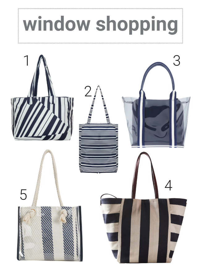 Το λευκό εναλλάσσεται με το μπλε στις πιο πρακτικές και fashionable τσάντες θαλάσσης, υπογραμμίζοντας τη διαχρονική γοητεία της μαρινιέρας στα καλοκαίρια μας.