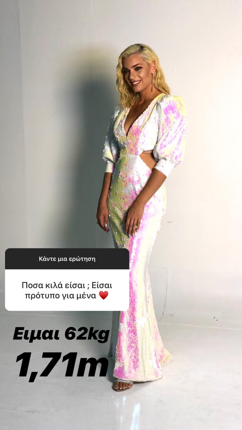 Μια από τις ερωτήσεις αφορούσε και στα κιλά και το ύψος της με την Άντρη Καραντώνη να μην διστάζει να απαντήσει το βάρος που έχει σήμερα. Όπως αποκάλυψε ζυγίζει 62 κιλά ενώ έχει ύψος 1.71.