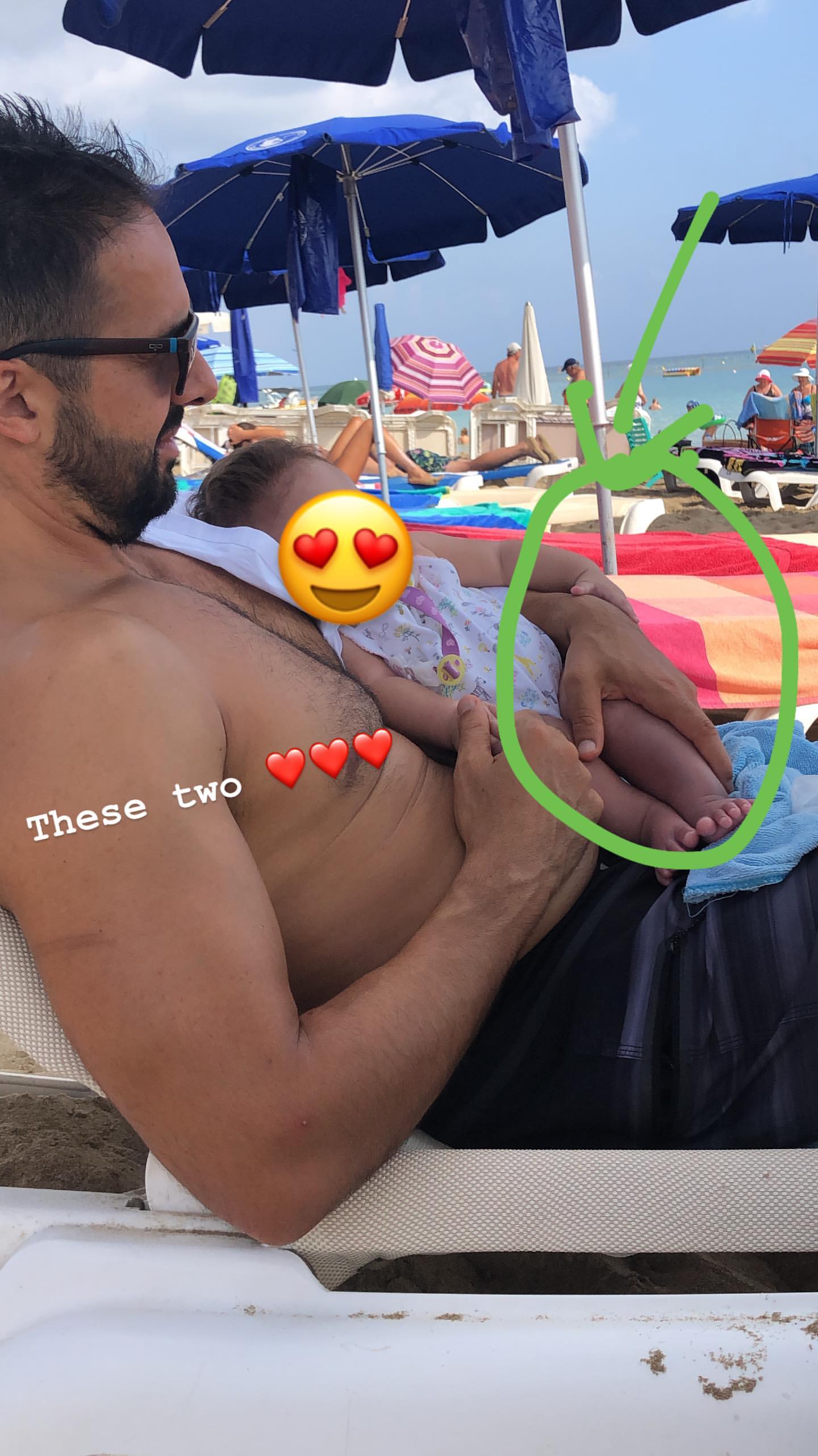 Το πανέμορφο μοντέλο θέλησε να μοιραστεί με τους διαδικτυακούς της φίλους μέσα από το instastory, στον προσωπικό της λογαριασμό, όμορφα στιγμιότυπα της μπέμπας τους με τον χαριτωμένο της μαγιό.