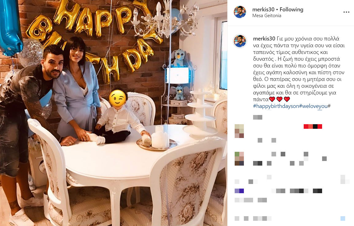 Ο Γιώργος Μερκής δημοσιεύοντας μια φωτογραφία των τριών τους στον προσωπικό του λογαριασμό στο instagram, ευχήθηκε στον γιο του, γράφοντας χαρακτηριστικά: "Γιε μου χρόνια σου πολλά να έχεις πάντα την υγεία σου να είσαι ταπεινός τίμιος αυθεντικος και δυνατός . Η ζωή που έχεις μπροστά σου θα είναι πολύ πιο όμορφη όταν έχεις αγάπη καλοσύνη και πίστη στον θεό. Ο πατέρας σου η μητέρα σου οι φίλοι μας και όλη η οικογένεια σε αγαπάμε και θα σε στηρίζουμε για πάντα". Δείτε πιο κάτω σχετικά στιγμιότυπα: