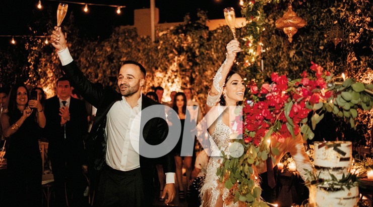 Στο περιοδικό "OK!" που κυκλοφόρησε τις προηγούμενες ημέρες είδαμε και μία υπέροχη φωτογραφία του ζευγαριού από εκείνη την βραδιά που δεν έχει δημοσιευτεί ενώ σύμφωνα με το ρεπορτάζ του δημοσιογράφου Γιώργου Μιχαήλ στο περιοδικό "OK!", γαμπρός και νύφη έτρεχαν μέχρι την τελευταία στιγμή για το πάρτι τους, καθώς λίγη ώρα πριν από την έναρξή του έπεσε βροχή και έπρεπε να προλάβουν οι συνεργάτες τους να καθαρίσουν τα πάντα για να υποδεχθούν τους καλεσμένους! Δείτε πιο κάτω τη σχετική φωτογραφία που δημοσίευσε το περιοδικό "ΟΚ!":