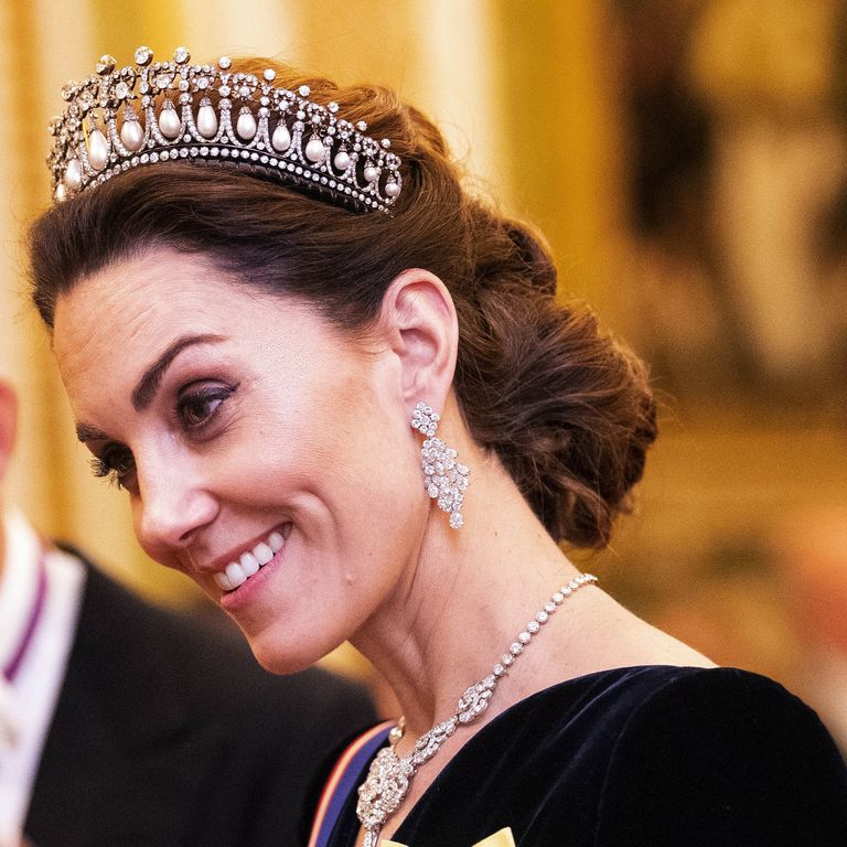 Ωστόσο αυτό που μας κέντρισε το ενδιαφέρον στην εμφάνιση της, ήταν το κόσμημα που έβαλε στο λαιμό της. Ένα κόσμημα το οποίο δανείστηκε από το μπουντουάρ της Βασίλισσας Ελισάβετ, το κολιέ Nizam of Hyderabad το οποίο σχεδιάστηκε από τον οίκο Cartier τη δεκαετία του 1930. Αυτή είναι η δεύτερη φορά που η Kate φόρα το συγκεκριμένο κολιέ, το έχει ξανά φορέσει το 2014 στο gala της National Portrait Gallery.