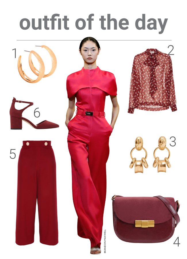 Επέλεξε το κόκκινο για ένα κομψό και στιλάτο σύνολο. Μια ψηλόμεση παντελόνα συνδυασμένη με μια bowtie μπλούζα και χρυσά αξεσουάρ θα σας χαρίσει μια chic εμφάνιση. Το κόκκινο - μπορντό είναι ιδανική επιλογή για τα χειμερινά μας looks.