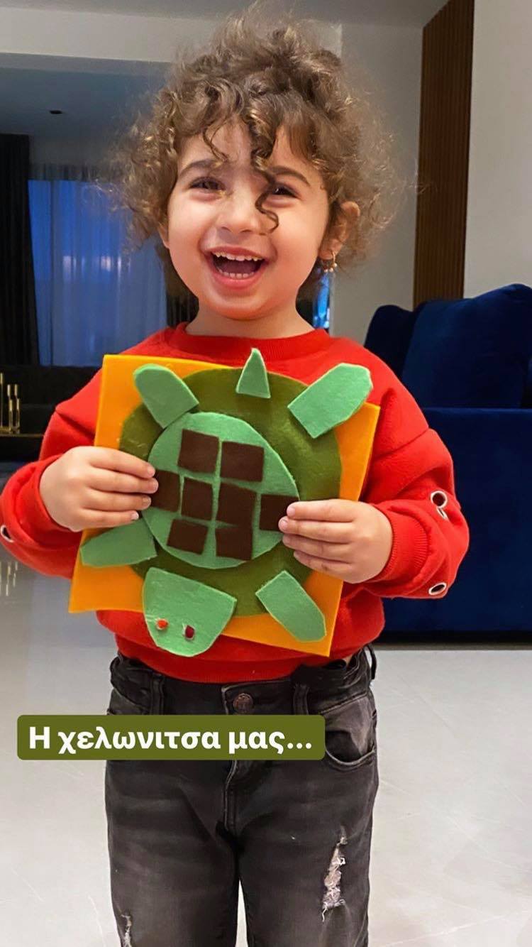 Χθες, 3 Απριλίου η μικρούλα ήθελε να φτιάξει κάτι για την γιαγιά της Στέλλα, μητέρα του Νεοκλή Σκουρουμούνη την οποία έχει πεθυμήσει πολύ. Με την βοήθεια της Άντρης Καραντώνη έφτιαξαν μια πολύ όμορφη χειροποίητη χελωνίτσα. Δείτε τις φωτογραφίες…